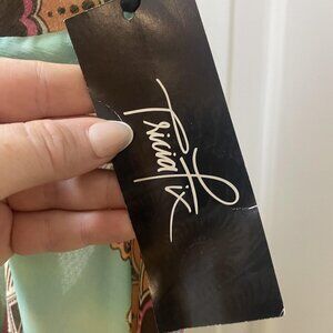 Tricia Fix Dress Womens Medium Green Floral Boho Maxi Halter Open Back Beach