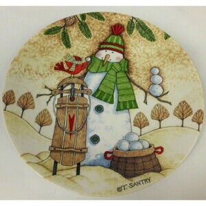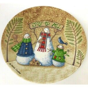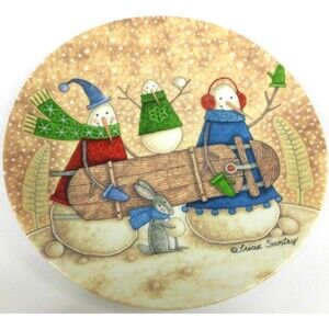 Tricia Santry Snowman Winter Scene Christmas Plate Dessert 7.75 Inch Set of 4