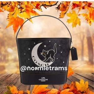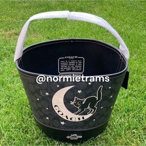Trick Or Treat Bucket In Signature Canvas With Halloween Black Cat Graphic Bag
