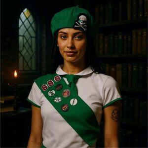 This Trickz N Treatz costume set is a wicked twist on the classic scout uniform — a mix of playful cosplay ✦ spooky details ✦ party‑ready style.