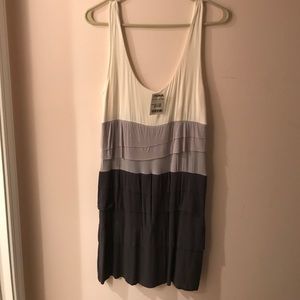 White, grey, dark grey. Soft material. Never been worn. Fits more like a medium than a large!