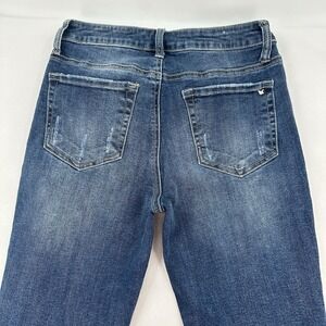 Tricot Ankle Cropped Rolled Hem Straight Leg Button Fly Distressed Women Jr 28
