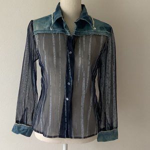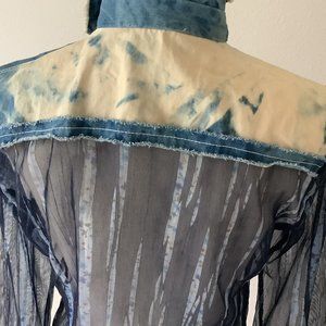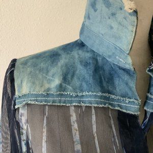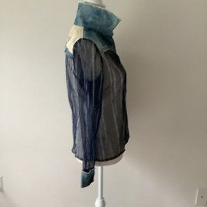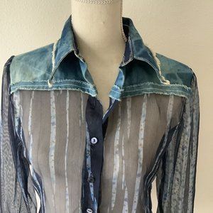 Tricot Chic Blue Denim Tie Dye Sheer Top Blouse
