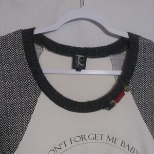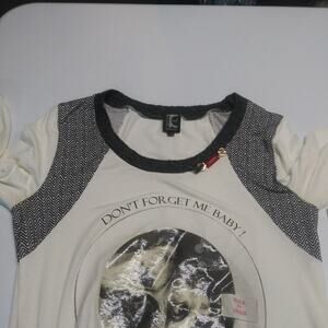 Tricot Chic Knit Cream and Black Long Sleeve Graphic Top Odd Art Luxury Size 10