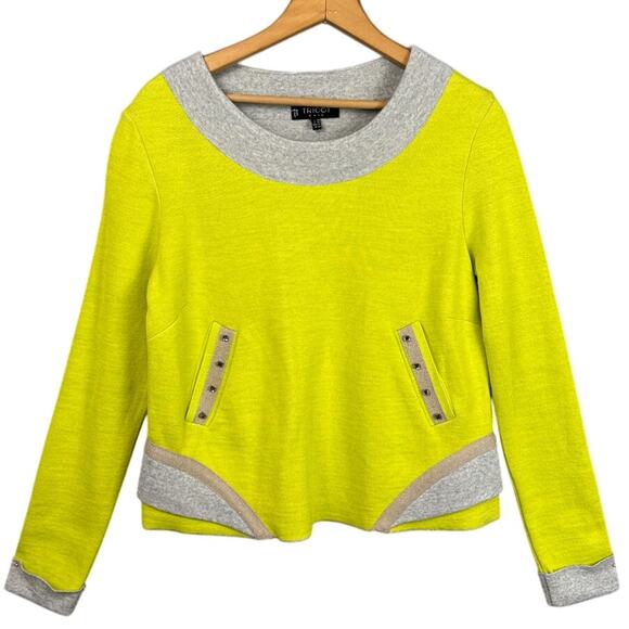 Tricot Wool Blend Sweater Italian Chartreuse Gray Sequins SZ 4 Quiet Luxury