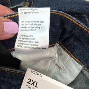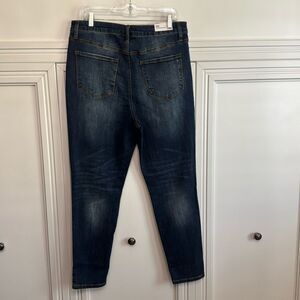 Tricot midsize skinny ankle jeans feature a medium-dark wash with fading add a modern touch, making them a versatile addition to any wardrobe. Cotton with spandex for stretch.