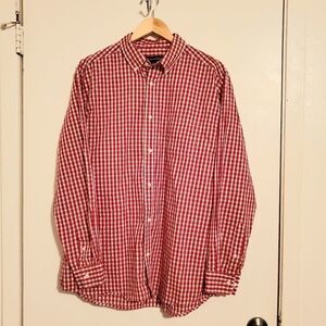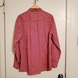 Classic red checkered print men's long sleeves, button down shirt.Pre-owned in great condition. Please refer to pictures for best description and condition verification.