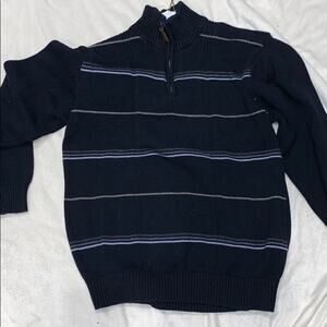 Tricots St. Raphael Blue Striped Quarter Zip Sweater | Sz L