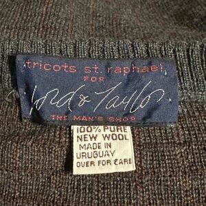 Tricots St. Raphael Grey Mens 100% Wool Orange Checkered Sweater Made in Uruguay