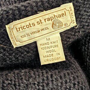 Tricots St Raphael Hand Knit Black Wool Cardigan Womens M Fitted Sweater VTG 80s
