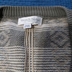 Tricots St Raphael Men's Plaid V-Neck Sweater - Green and Tan