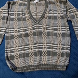 Stay stylish and comfortable with this men's plaid V-neck sweater. Featuring a classic green and tan design, it's perfect for any casual occasion.