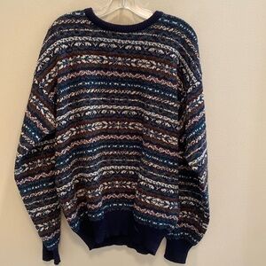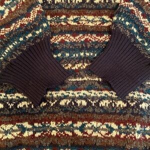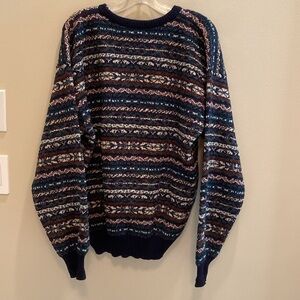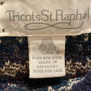 Tricots St Raphael VTG Crew Neck Wool Knit Fair Isle Sweater Blues Teal Brown XL