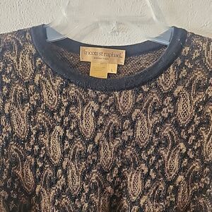 Tricots St Raphael Vintage Sweater Women L Unisex Floral Black Gold Wool Viscose
