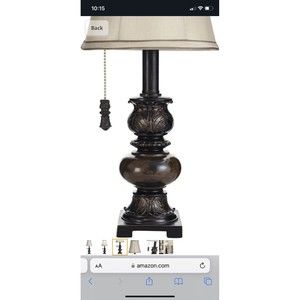 Description Make a statement with the Trieste accent table lamp. It has an ivory fabric shade and a stunning marble finish that gives a luxurious look. It even has a pull chain for some extra traditional appeal. Features & details Overall: 18 1/2" high x 8" wide. Shade is 7 1/2" high x 8" wide. Uses one maximum 40 watt standard-medium base bulb (not included). Trieste marble finish over poly construction. Ivory fabric shade. 5-foot long cord.