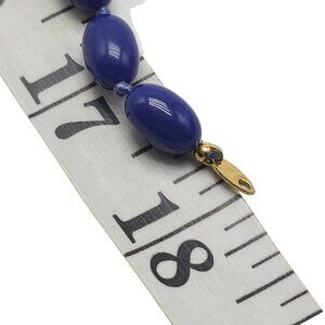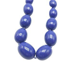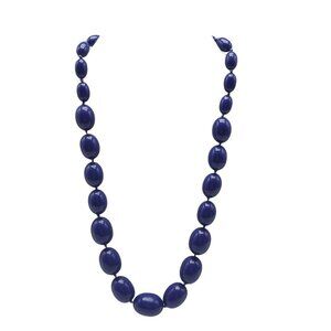 Trifari Bead Necklace Navy Blue Graduated Oval 18" Vintage Signed Acrylic