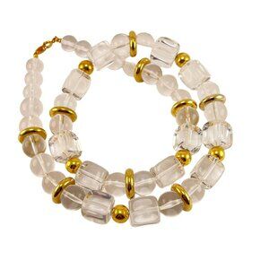Trifari Clear Lucite and Gold Beaded Necklace 1970s 22 inch
