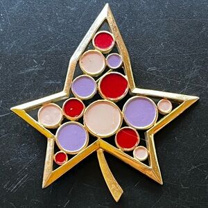 Trifari Confetti Collection 1967 Leaf Brooch Pin Pink Purple Enamel Signed MCM