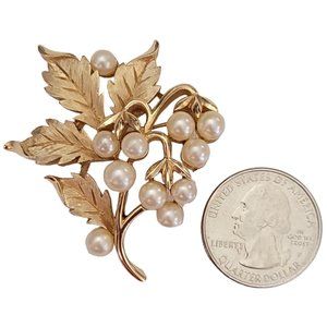 Trifari Crown Over T Gold Tone Faux Pearl Fruit And Leaf Brooch Pin, Signed K698