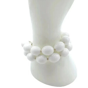 Trifari Double Stranded White Lucite Bead Bracelet Gold Tone Closure Vintage