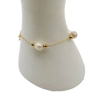 Trifari Faux Pearl Chain Bangle Bracelet Gold Tone Spring Ring Closure Vintage