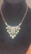 This elegant necklace features a stunning combination of gold, cream, and blue rhinestones. Perfect for adding a touch of sparkle to any outfit.