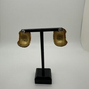 These Trifari gold-tone earrings feature a textured design and post style, ideal for adding sophistication to formal or business attire.