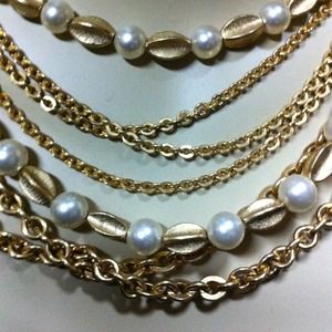 Trifari ~ Layered Gold tone, faux Pearl necklace.