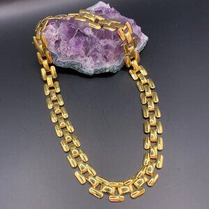 Trifari Panther Link Gold Tone Chain Link Choker Necklace Costume Jewelr…