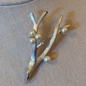 Trifari Signed (Crown Over 'T') Silver Tone Faux Pearl Branch Brooch Rare Find. Pre-owned, this brooch is in excellent condition. Brushed and polished metal.