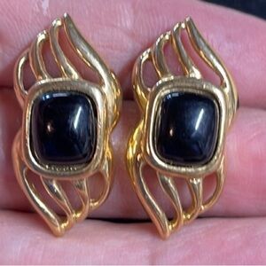 Trifari Signed Vintage Retro Gold Tone & Black Center Pierced Earrings. P/A
