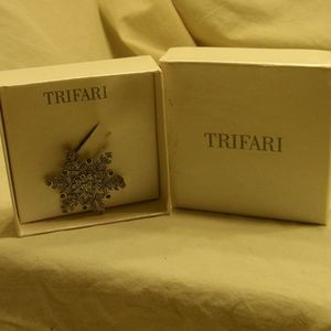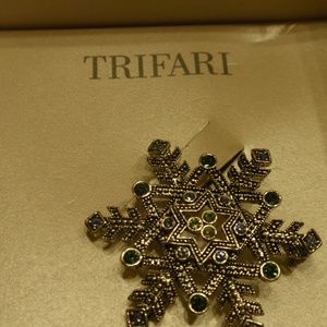 The brooch is in beautiful condition and it comes in its original Trifari box The brooch itself is unmarked. I received this as a gift years ago and decided it's time to sell it. It measures about 1.5" across.