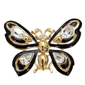 Trifari TM Butterfly Brooch Vintage Clear Crystal Rhinestone Black Enamel Pin