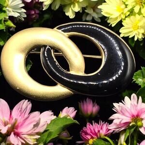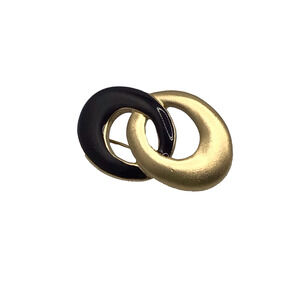 Trifari Vintage Gold Tone Black Enamel Oval Brooch Pin Art Deco Mid Century