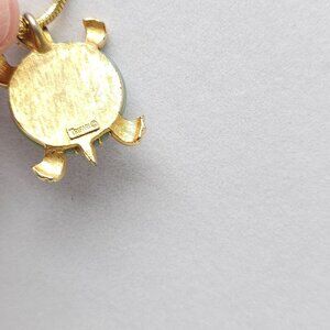 Trifari Vintage Gold Tone Turtle Pendant Necklace Jade Green Lucite