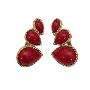 Trifari TM Vintage Red Lucite Necklace Matching Clip On Earrings Set Signed, C370