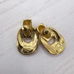 Trifari Vintage red enamel gold tone post Earrings Door Knocker Style Retro 80s