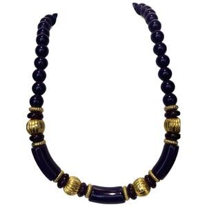 Trifari Womens Dark Purple Chunky Beaded Gold Tone Princess Vintage Necklace 18”