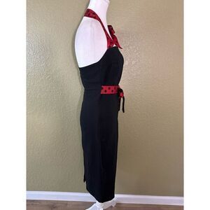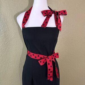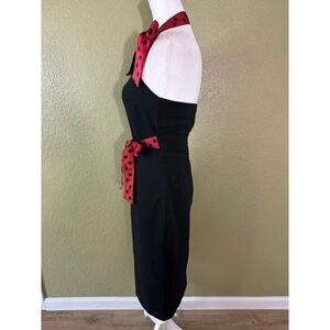 Trigger Finger M Retro Pin Up Halter Dress Black Red Polka Dot Ribbon Rockabilly