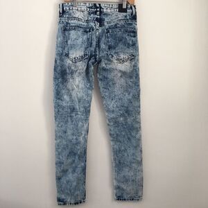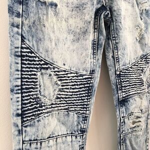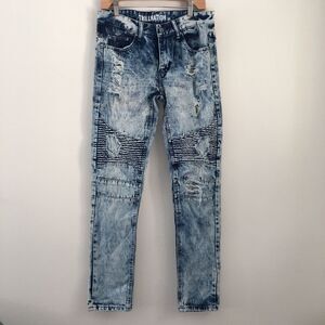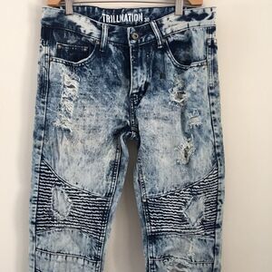 Trillnation Men’s Low Rise Acid Wash Moto Jeans | 30