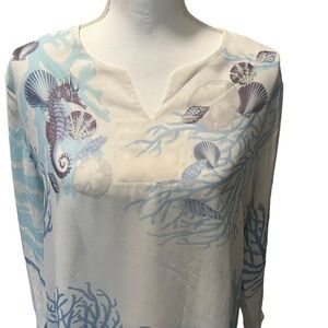Trillogy by Morning Sun Seashore Print Tunic Size Large