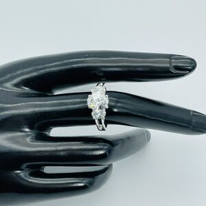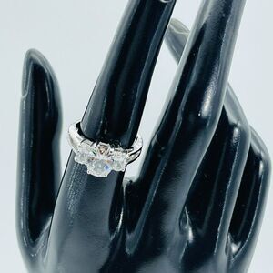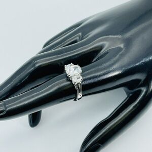 Trilogy Cubic Zirconia.Three Stone Trinity Engagement Ring Marked JA Silver Plated Size 8