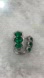 Simulated Emerald trilogy gemstones bordered in a silvertone design with a small (lab grown) diamond accent stone on top