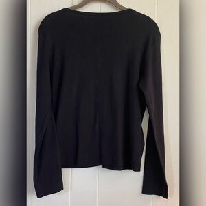 Trilogy Sweater Women’s Small Black Cotton Cardigan Red Embroidered Flower