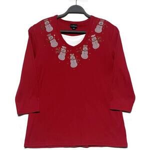 Trilogy by Morning Sun Top Size Extra Large Red With White Snowmen Accent
