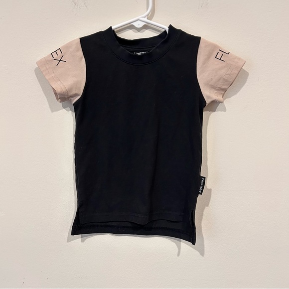 Trilogly black tee with tan sleeves and flex written on both sizes baby size 12-18 months in very good used condition . Neckline is just a bit wavy but not bad which can probably be ironed.