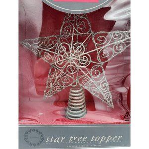Trim A Home Christmas Holiday Metal Silver Glitter Star Tree Topper