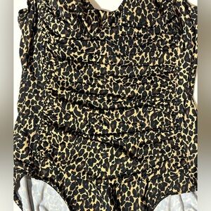 TrimShaper Ruched One Piece Cheetah Animal Print Swimsuit Bathing Suit Size 16