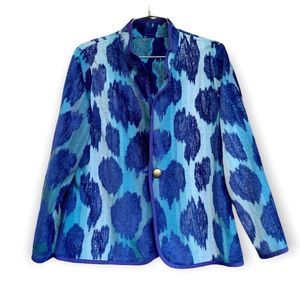 Trimdin Reversible Blazer Jacket Abstract Blues Jaquard Size M