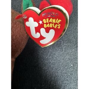 Trimmings Brown Moose TY Beanie Babies Red Antlers Red Green Feet 2007 Retired
